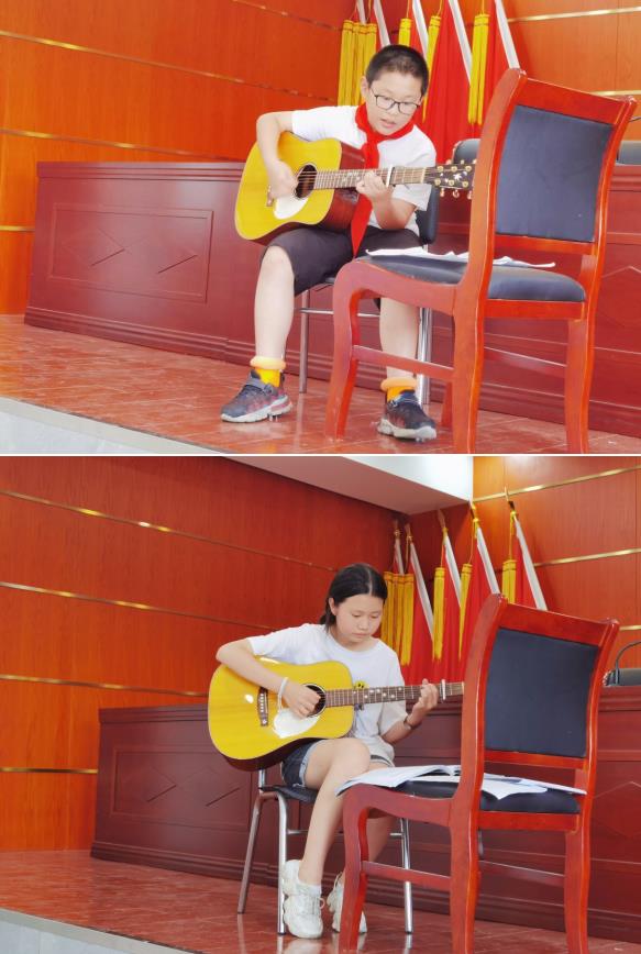 現(xiàn)場(chǎng)還有兩位小朋友分別帶來(lái)了自己心愛(ài)的吉他,彈奏起清脆的琴音,邊彈邊唱,悠揚(yáng)動(dòng)聽(tīng),展示出青春的色彩。除此之外,詩(shī)歌朗誦、歌曲演唱,不同的才藝輪番上演,推動(dòng)著整場(chǎng)的氛圍熱鬧非凡。