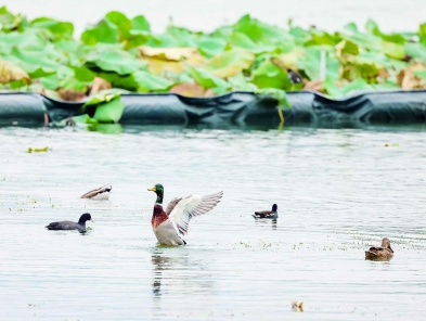 玄武湖環(huán)洲白橋區(qū)域水生態(tài)治理區(qū)內(nèi),百余只綠頭鴨、白骨頂雞、鸕鶿等越冬候鳥在此棲息、覓食。 南京日?qǐng)?bào)/紫金山新聞?dòng)浾?段仁虎 攝