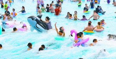 江寧湯山歡樂水世界吸引眾多市民前來戲水。 南京日報/紫金山新聞記者 馮芃 攝