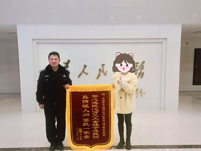 “感謝警察同志幫我找回了項鏈,大過年的,要是真的丟了,我這個年都過不好了!”近日,家住東海縣牛山街道的李女士來到東??h公安局,將一面印有“警心連民心,萬元大金鏈子速找回;真情暖人間,警民一家親!”的錦旗送到民警張英龍的手中,對民警輔警積極為民辦實事、為民解憂的工作態(tài)度給予高度的贊揚。