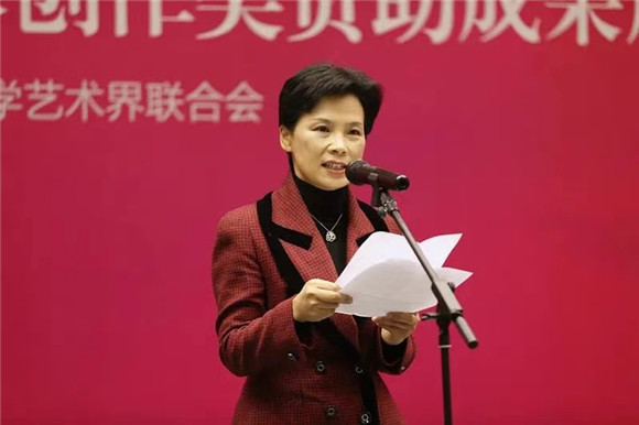南京市文旅局副局長夏軍代表南京市文旅局發(fā)表講話,她在講話中介紹了南京市藝術(shù)基金近年來的發(fā)展,她指出文化是一種軟實力,它與經(jīng)濟發(fā)展等硬實力處于同樣重要的地位。此次展覽以“妙筆墨韻繪小康”為主題,意義在于檢閱我市美術(shù)界的最新成就,突出反映廣大美術(shù)家深入生活、扎根人民,用激情畫筆描繪中國色彩、時代風(fēng)貌和自然之美、生活之美、人文之美的創(chuàng)作實力和水平。鼓勵各位藝術(shù)家繼續(xù)創(chuàng)作出更多的藝術(shù)精品奉獻人民。而后此次成果展獲獎作者、南京書畫院青年書畫院畫家黃梅凡作為代表發(fā)言,她感謝主辦單位和承辦單位提供平臺,給予參展藝術(shù)家表達自我和學(xué)習(xí)的機會。她從創(chuàng)作者的角度闡述了對主題創(chuàng)作的思考與心得,得到了中肯的意見,表示今后將與各位同道一起創(chuàng)作出更多精品力作,為南京書畫藝術(shù)的建設(shè)添磚加瓦。最后,紀增龍副部長、夏軍副局長、張俊副主席向各位獲獎作者頒獎,并合影留念。開幕式結(jié)束后,與會領(lǐng)導(dǎo)嘉賓共同參觀展覽。