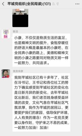 新思想引領(lǐng)高質(zhì)量發(fā)展,南京市棲霞區(qū)馬群街道百水芊城社區(qū)運(yùn)用掌上云社區(qū)開展“我身邊的小康”主題宣講活動(dòng),由社區(qū)黨委第二支部黨員張竹主講,講述百水芊城小區(qū)在建設(shè)小康路上的幸福蝶變,鼓舞社區(qū)工作人員決戰(zhàn)決勝斗志,激發(fā)決勝全面小康的“文化力量”。