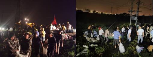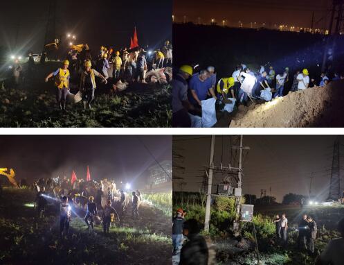 上下齊心,舉力防汛。此次防汛工作中,東陽社區(qū)便民河防汛巡堤人員蔡家華發(fā)現(xiàn)河堤有散津,立即向上級匯報(bào),棲霞街道主任王曉鋒、副主任周國強(qiáng)、東陽社區(qū)黨委書記石尚錦、棲霞街道水利站站長戴有忠立即趕到現(xiàn)場,組織人員機(jī)械搶險(xiǎn),在半個(gè)小時(shí)內(nèi),1輛裝載機(jī)、2輛運(yùn)土的渣土車、60余名搶險(xiǎn)隊(duì)員全部到位,大家展開了搶險(xiǎn)工作,工作人員首先將出水點(diǎn)旁小草全部清除,然后用蛇皮口袋灌裝黃土疊包打圍,形成養(yǎng)水盆,從白天到凌晨2點(diǎn),直到養(yǎng)水盆弄好,出水點(diǎn)才得到了控制。