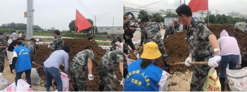 防內(nèi)澇,助防汛。針對此次棲霞街道地處長江中下游沿岸,長江支流九鄉(xiāng)河石埠橋糧庫段河岸沿線水位告急,在石江線低洼處九鄉(xiāng)河河水已漫過河提,轄區(qū)內(nèi)出現(xiàn)多處低洼點出現(xiàn)積水等情況,石埠橋村城治委公眾委員、志愿者們主動請戰(zhàn),沖鋒在防汛一線,全力配合街道防汛搶險突擊隊,手拿鐵鍬,一下又一下將泥土裝滿沙袋,并扛到河堤旁進行加固,同時志愿者們積極采取多項措施,加強防汛減災(zāi)工作,為糧庫和居民出行筑牢“安全堤”和“防汛墻”。