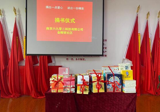 7月23日,“共建書香社區(qū)”捐書活動在南京市棲霞區(qū)馬群街道金陵驛社區(qū)舉行,愛心企業(yè)南京六九零二科技有限公司向金陵驛社區(qū)捐贈圖書500余冊,進一步豐富了社區(qū)圖書閱覽室的書籍資源。