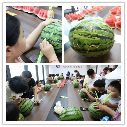 炎炎夏日,擋不住村民對(duì)西瓜的熱愛(ài)。志愿者講解了本次活動(dòng)的主題和流程后,將一個(gè)個(gè)碧綠青翠的西瓜分到每組家庭手中?,F(xiàn)場(chǎng)十余名參賽村民將一把小小的刻刀玩轉(zhuǎn)手中,雕出各種花樣。有的村民雕刻龍山村LOGO,有的村民雕刻卡通頭像,有的村民將自家庭院也雕刻上了……八仙過(guò)海各顯神通,一個(gè)個(gè)別有趣味的創(chuàng)意雕琢在西瓜皮上,贏得眾多驚嘆與掌聲。