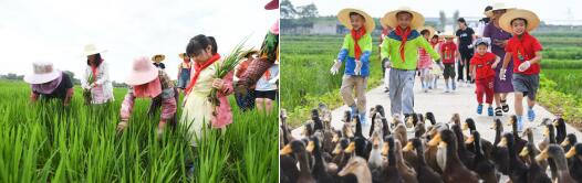 感受田園氣息,體驗天然氧吧;體驗農事樂趣,品味農耕文化。在青少年們正式下農地體驗農事樂趣之前,阜莊村生態(tài)循環(huán)農業(yè)示范基地農事指導員給青少年們講解了下農地需要注意的事項,叮囑青少年在下農地之前,戴著草帽、穿著雨鞋、拿著手套,確保“武裝齊全”。隨后,農業(yè)指導員在田地里拿起水稻和雜草,現(xiàn)場教導青少年分辨水稻和雜草的區(qū)別,并教會他們怎樣才能又快又好的拔草。“小鴨子好可愛啊!”活動中,青少年們還幫助農業(yè)指導員一起趕鴨子,在實踐中增進青少年對于農業(yè)知識的了解。