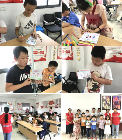 活動最后,孩子們根據(jù)今天的討論和學(xué)習(xí),對應(yīng)郵票上的內(nèi)容在紙上用圖畫和文字的形式繪制出來。孩子們充分發(fā)揮自己的想象力,喜氣洋洋的完成自己的創(chuàng)作并一一展示了自己的作品。譚偉銘小朋友說:“提高青少年保護意識從我做起”;“保護青少年從小抓起,依法維權(quán)從我做起。”孫翼小朋友說道。