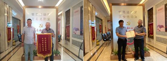 7月28日,南京市江寧區(qū)江寧街道盛江社區(qū)居委會將印有“抗洪救災(zāi)展風(fēng)采,無私奉獻(xiàn)顯真情”的錦旗和新冠疫情防控突出貢獻(xiàn)的證書送到南京濱江建材科技集團(tuán)董事長陳福云手里,感謝企業(yè)對社區(qū)建設(shè)的大力支持與積極貢獻(xiàn)。