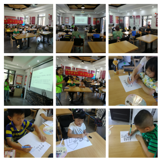 好的家風(fēng)家訓(xùn),能助力孩子健康成長(zhǎng),活動(dòng)一開始,老師教孩子們學(xué)了禮儀手操和基本社交禮節(jié),“拍拍手,懂禮儀;拍拍手,懂孝義……”孩子們邊拍手邊唱兒歌,課堂瞬間活躍起來。隨后老師用“最美孝心少年”和身邊的“尊師孝親”榜樣的故事讓大家感悟道德,踐行道德。通過誦讀《家訓(xùn)名篇》和講解《孟母三遷》、《孟母斷織》的故事,讓孩子們理解什么叫家訓(xùn),如何成為優(yōu)秀、知禮的人,活動(dòng)中紅葉社工老師還讓孩子們現(xiàn)場(chǎng)在紙上寫下自己家的家訓(xùn),并交流了各自的“好家訓(xùn)”。結(jié)束上半場(chǎng)禮儀家訓(xùn)學(xué)習(xí),孩子們滿懷期待地開始了下一場(chǎng)文房四寶學(xué)習(xí)活動(dòng)。茶茶國(guó)學(xué)堂上,老師認(rèn)真、仔細(xì)的教授孩子們?cè)鯓游彰P字的方式和姿勢(shì),再一筆一劃、一撇一捺手把手的教孩子們,并發(fā)放書法紙筆,題寫范字,孩子們積極認(rèn)真練習(xí)書寫,一行行稚嫩的毛筆字逐漸呈現(xiàn)在“小小三字經(jīng)”上。