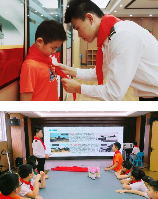 現(xiàn)場(chǎng),志愿者通過(guò)播放視頻和現(xiàn)場(chǎng)講解,讓孩子們了解了“紅領(lǐng)巾”所代表著的深刻內(nèi)涵,感悟愛(ài)國(guó)主義精神,樹(shù)立投身祖國(guó)國(guó)防事業(yè)的理想。同時(shí),來(lái)自南京航空航天大學(xué)飛行技術(shù)專業(yè)的飛行學(xué)員林童身穿飛行制服,為社區(qū)的孩子們佩戴上了紅領(lǐng)巾,并細(xì)致地講解正確的紅領(lǐng)巾佩戴過(guò)程。隨后,飛行員向孩子們講述了國(guó)防科技與我國(guó)航空航天事業(yè)的發(fā)展史,講述一代代中國(guó)航空、航天人的科研事跡,孩子們紛紛用畫筆在紙上畫出了屬于自己的“小飛機(jī)”,并一筆一劃地簽上了自己的名字。并表示長(zhǎng)大了想當(dāng)科學(xué)家,制造出更厲害的飛機(jī)!
