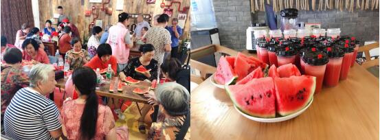 每年二十四節(jié)氣中的“立秋”之時(shí),民間流行立秋“啃秋”的習(xí)俗,即在立秋之日用西瓜“啃”去余夏暑氣,“啃”下“秋老虎”,迎接涼爽的秋季。葉村社區(qū)邀請社區(qū)老年人來到現(xiàn)場并準(zhǔn)備了美味的西瓜及現(xiàn)榨的西瓜汁,分享完西瓜之后,所有老年人不約而同的對(duì)現(xiàn)場的衛(wèi)生進(jìn)行保潔,帶走瓜皮紙屑,留下歡聲笑語。