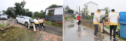 雨水來(lái)的急、猛,村民在出行的過(guò)程中因視線變差,不慎壓到道路旁邊的排水溝,恰好排水溝因?yàn)槌兄夭恍?,碎裂開(kāi)來(lái),致使車子的輪胎正好卡在缺口處,不僅讓村民困于此處,更妨礙了其他村民的交通出行。退役軍人、志愿者在接到村民的求助后,立即趕來(lái)現(xiàn)場(chǎng)維持交通秩序,拼盡全力幫助村民把車子推上來(lái),在為民排憂解難的過(guò)程中,以自己的行動(dòng)帶動(dòng)、感染身邊人加入文明城市創(chuàng)建的行列中來(lái)。