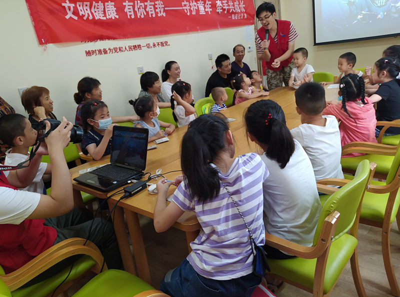 長江江豚,生存在長江里的哺乳動(dòng)物,鉛灰色的身體,圓滾滾的腦袋,還有像在微笑著的模樣。如今,它們的數(shù)量只有約一千頭。由于人類活動(dòng)造成的長江生態(tài)破壞,處在瀕臨滅絕的境地。8月11日,江寧區(qū)秣陵街道殷巷社區(qū)開展了“守護(hù)江豚之都”主題宣傳活動(dòng),江豚保護(hù)志愿者走進(jìn)社區(qū),帶領(lǐng)社區(qū)的孩子們探秘長江江豚的世界。
