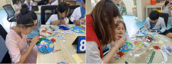 激烈的競答環(huán)節(jié)過后,為讓小朋友們深入了解古詩詞,社工還為小朋友們精心準(zhǔn)備了古詩詞創(chuàng)意手工diy活動,小朋友們聚精會神、仔細(xì)觀摩,充分發(fā)揮想象力制作了起來,在社工的指導(dǎo)下,一件件創(chuàng)意手工掛飾作品新鮮出爐,現(xiàn)場氛圍十分熱烈。