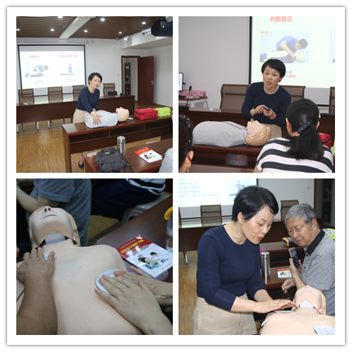 培訓(xùn)課程以ppt的形式展示,內(nèi)容涉及救護新概念、心肺復(fù)蘇、氣道異物梗阻等急救知識,張老師不僅用通俗易懂的語言和鮮活的案例進行了詳細地講解,還現(xiàn)場演示了心肺復(fù)蘇和氣道異物梗阻的急救方法。大家積極參與互動,現(xiàn)場氣氛異?;钴S。