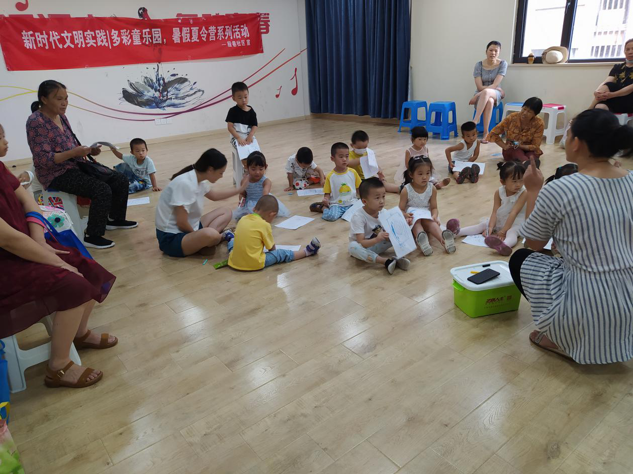 活動(dòng)中,小朋友們紛紛拿著書(shū)籍一起閱讀唐詩(shī)《回鄉(xiāng)偶書(shū)》,有的講故事,有的背誦句子,有的分享好詞好句,有的即興表演,共同分享一段充滿溫暖語(yǔ)言的快樂(lè)時(shí)光,隨后社區(qū)志愿者向小朋友們講了讀唐詩(shī)的重要性,她倡導(dǎo)每一位小朋友們都要親近書(shū)本,養(yǎng)成讀好書(shū)、好讀書(shū)的習(xí)慣,與書(shū)為伴,開(kāi)拓視野,享受讀書(shū)的快樂(lè)、學(xué)習(xí)的快樂(lè)。接著,在簡(jiǎn)筆畫(huà)環(huán)節(jié),小朋友們用手中的畫(huà)筆,充分發(fā)揮自己豐富的想象力,自由地在紙上精心繪畫(huà)“圖形腦袋”,描繪出自己心中的夢(mèng)想和希望。經(jīng)過(guò)一個(gè)半小時(shí)的繪畫(huà)創(chuàng)作,一幅幅色彩斑斕,充滿童趣的繪畫(huà)作品呈現(xiàn)在大家眼前。繪畫(huà)完成后,還進(jìn)行了合唱歌曲、手指謠、英文兒歌等環(huán)節(jié)。最后小朋友們一起合影留念,也為這次活動(dòng)畫(huà)上了圓滿的句號(hào)。