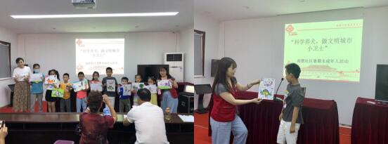 為深入推進(jìn)文明城市創(chuàng)建工作,引導(dǎo)轄區(qū)居民文明規(guī)范養(yǎng)犬,南塑社區(qū)物業(yè)分公司攜手楓盛家綜黨支部開展以“科學(xué)養(yǎng)犬,做文明城市小衛(wèi)士”為主題的暑期未成年人活動(dòng)。活動(dòng)開始前,社區(qū)利用“掌上云社區(qū)”微信群向轄區(qū)小朋友們征集關(guān)于“文明養(yǎng)犬”主題的畫作,得到居民朋友熱烈響應(yīng)?;顒?dòng)中,小朋友們帶著精心畫的畫在家長(zhǎng)的陪同下興高采烈地來(lái)社區(qū)參加活動(dòng)?;顒?dòng)期間,孩子們積極舉手要上臺(tái)分享自己畫作的內(nèi)容,通過(guò)趣味的畫作、稚嫩的語(yǔ)言將文明養(yǎng)犬的理念傳遞給大家。活動(dòng)結(jié)束后,社區(qū)通過(guò)將小朋友們的作品收集起來(lái)制作成宣傳海報(bào)向廣大居民朋友進(jìn)行宣傳,并免費(fèi)向社區(qū)內(nèi)有犬家庭發(fā)放牽引繩、倡議書,呼吁社區(qū)居民“文明養(yǎng)犬,從自己做起!”