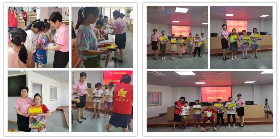 開辟新陣營,陪伴共成長。此次活動中,雙金社區(qū)四點(diǎn)半課堂的孩子們準(zhǔn)備了詩歌《安全教育詩歌朗誦》、《文明安全三句半》、《聽我說謝謝你》等節(jié)目,工作人員通過因地制宜的開展各種形式多樣符合學(xué)生特點(diǎn)的社會實(shí)踐活動來展示了四點(diǎn)半課堂學(xué)生們的風(fēng)采。為表彰四點(diǎn)半課堂學(xué)生暑期參加活動的積極性,徐老師現(xiàn)場給孩子們頒發(fā)了獎(jiǎng)狀和發(fā)放了獎(jiǎng)品,鼓勵(lì)孩子們好好學(xué)習(xí)、天天向上。