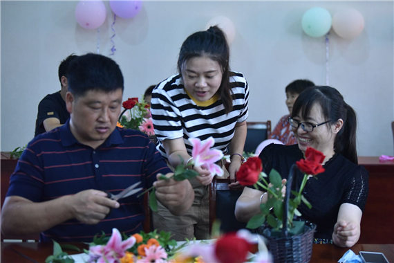 參與本次活動(dòng)的家庭中,有祖孫三代同堂的家庭,也有剛剛組建小家的夫妻家庭,50后、60后、70后、80后、90后、00后甚至10后,不同年代的謝村居民相聚一堂,分別代表著不同的時(shí)代、不同的家庭、不同的家風(fēng)家訓(xùn)。每一種花都有著不同的含義,誠(chéng)實(shí)守信花、愛(ài)崗敬業(yè)花、鄰里友愛(ài)花、尊老愛(ài)幼花、勤儉節(jié)約花、勵(lì)志自強(qiáng)花、見(jiàn)義勇為花、助人為樂(lè)花……居民一邊在志愿者的指導(dǎo)下選擇主花朵進(jìn)行修枝和剪根,并根據(jù)上疏下茂、高深色低淡色的原則進(jìn)行插花創(chuàng)作;一邊互相交流著家庭和睦的相處之道,分享屬于自己家獨(dú)特的家風(fēng)家訓(xùn)。“勤儉節(jié)約是我們家的家風(fēng)。”社區(qū)居民夏蕾說(shuō)道:“勤儉節(jié)約是中國(guó)人的一種傳統(tǒng)美德,是中華民族的優(yōu)良傳統(tǒng),從小父母就教育我要學(xué)會(huì)勤儉節(jié)約、吃苦耐勞,我以后也會(huì)這樣去教育我的孩子。”“清清白白做人,干干凈凈做事。”謝村社區(qū)老黨員王強(qiáng)向大家分享了自己家的家風(fēng),今天他們一家四代人都來(lái)參與了活動(dòng),最小的還在媽媽肚子里,一家人臉上是藏不住的幸福。