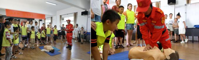 活動(dòng)現(xiàn)場(chǎng),志愿者老師為孩子們耐心教導(dǎo)干粉滅火器的使用方法,同時(shí)也進(jìn)行了現(xiàn)場(chǎng)模擬。“先拉保險(xiǎn)銷,一手握著噴管,一手提著壓把,對(duì)著火焰進(jìn)行噴射,直到火焰全部撲滅”,孩子們相互指導(dǎo)、相互學(xué)習(xí)。隨后,在老師的帶領(lǐng)下,孩子們還到觀看了老師精心準(zhǔn)備的“火場(chǎng)逃生術(shù)”。志愿者老師對(duì)火災(zāi)逃生知識(shí),消防服裝、安全繩、消防車等更多細(xì)致的消防知識(shí)做了講解。此外,志愿者老師還為孩子們細(xì)心講解急救技能,并且還手把手指導(dǎo)現(xiàn)場(chǎng)孩子們模擬了急救技巧。別看老師做起來簡(jiǎn)單,親自演練還是存在很大的難度,孩子們紛紛表示,急救知識(shí)的學(xué)習(xí)非常實(shí)用,將來一定要學(xué)好急救技能。