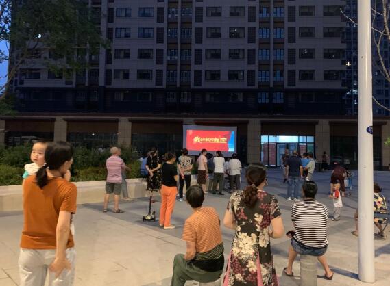在前期電影內(nèi)容的選擇上,大家一致覺得播放“紅色電影”可以更好的推廣社區(qū)精神文化。通過前期的社區(qū)宣傳欄、電子屏、社區(qū)微信群、入戶調(diào)研時(shí)宣傳等多種形式通知大家積極參與。晚上7點(diǎn)不到,廣場上已經(jīng)有不少居民到來,等待電影的播出。影片播放過程中,很多居民深受感染,每到動(dòng)情之處都會(huì)情不自禁的流下激動(dòng)的淚水,每到振奮人心處現(xiàn)場都伴有為祖國驕傲的掌聲。影片結(jié)束后,一位居民對(duì)社區(qū)工作人員說,這部電影他看了好幾遍,每次都有不同的感悟,感嘆祖國的日益強(qiáng)盛和現(xiàn)今百姓的全民素質(zhì)都在提升。梁書記在和居民聊天時(shí)也表示現(xiàn)在大家的生活水平日益提高,精神文化建設(shè)不可懈怠,也非常感謝居民們的配合,給與支部工作很大的支持。