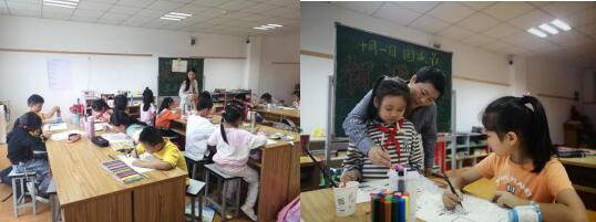 課堂上,志愿者們和孩子們觀看《國慶節(jié)的由來》動畫片。在觀看的過程中,志愿者向孩子們講解到:“我們的幸福生活來之不易,要時刻牢記那些為國家獨立、民族解放而作出犧牲的前輩們。”隨后,志愿者老師老師給孩子們講解了繪畫色彩的運用、使用技巧等,孩子們則迫不及待地在紙上進行設計構圖,根據(jù)自己的構圖在環(huán)保手提袋上勾勒形狀、用水調和顏料,最后再用彩筆對畫紙進行上色。孩子們懷著濃濃愛意,依照自己的想象力一筆一畫認真圖畫,他們用五彩繽紛的色彩和優(yōu)美的線條描繪出鮮艷的五星紅旗、天安門和“71”周年的字眼,他們用一雙雙稚嫩的小手繪畫出了一幅幅形態(tài)各異、色彩斑斕的作品,表達出他們對祖國祝福和對未來的憧憬。