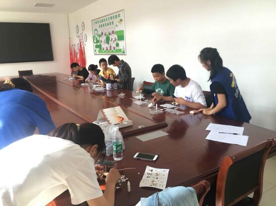 活動(dòng)中,志愿者老師給每位小朋友分發(fā)了電動(dòng)小車(chē)制作工具,并講解了模型制作的步驟和注意事項(xiàng)。在老師介紹完太陽(yáng)能小車(chē)的科學(xué)原理后,所有人跟著老師一起動(dòng)手安裝小車(chē)。在老師的悉心指導(dǎo)、家長(zhǎng)的耐心輔助,孩子們的用心動(dòng)手之下,太陽(yáng)能小車(chē)逐漸安裝完成。為了提高孩子的積極性,現(xiàn)場(chǎng)還進(jìn)行太陽(yáng)能電動(dòng)小車(chē)比賽活動(dòng)。老師在地上擺了四瓶礦泉水,讓小朋友在不遠(yuǎn)處用自己的“車(chē)”瞄準(zhǔn)水瓶之間的空隙,穿過(guò)即為優(yōu)秀,比賽結(jié)束后小朋友們獲得相應(yīng)的獎(jiǎng)勵(lì)。