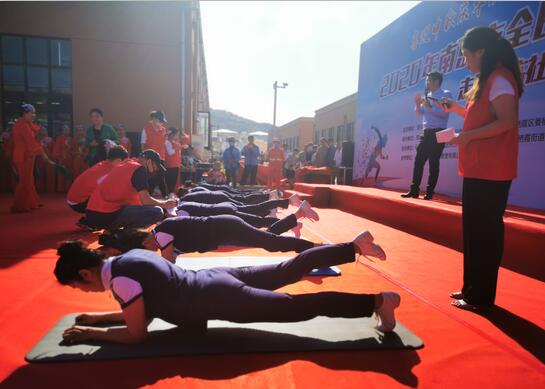 活動由一場集體熱身運(yùn)動拉開序幕,一百五十多名表演者在專業(yè)的教練指導(dǎo)下伴隨著動感的音樂整齊劃一的跳起來,全民健身的氛圍瞬間感染了周邊的居民群眾。活動正式開始后,時尚健身操《喝一杯最烈的酒》、安塞腰鼓表演《鼓動天地》、健身秧歌《微山湖》、健身球《我為祖國獻(xiàn)石油》看得人眼花繚亂。舞蹈演員們衣炔飄飄、身段優(yōu)美,絢麗的舞姿、細(xì)膩的表演無不向社區(qū)居民們展示了南煉社區(qū)的風(fēng)采。表演間隙,各項趣味節(jié)目如《單腳平板支撐》、《電臀達(dá)人》、《拖乒乓球快走》等更是將現(xiàn)場活動氣氛推向了高潮。在場觀眾個個躍躍欲試、積極參與,大家沉浸在歡樂的海洋中。