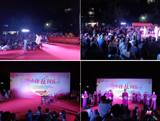 慶國慶,迎中秋。此次活動在歌曲《盛世歡歌》中拉開帷幕,表演者用悠揚的歌聲與動人的旋律,燃起了現(xiàn)場觀眾的熱情。隨后國學朗誦、舞蹈、武術、黃梅戲、鋼琴獨奏等表演贏得了現(xiàn)場群眾的陣陣掌聲,演員們在舞臺上大展美妙舞姿,為晚會增光添彩,動人歌聲,唱出人民群眾對祖國的熱愛,舞美歌亮、豐富精彩,活躍的氣氛展現(xiàn)出居民的精氣神,贊美了強大的祖國,抒發(fā)了大家尊重傳統(tǒng)、繼承傳統(tǒng)、弘揚傳統(tǒng)的豪情壯志,為轄區(qū)居民獻上了一場精彩的視覺盛宴,活動的最后《我和我的祖國》大合唱為此次晚會拉下了帷幕。