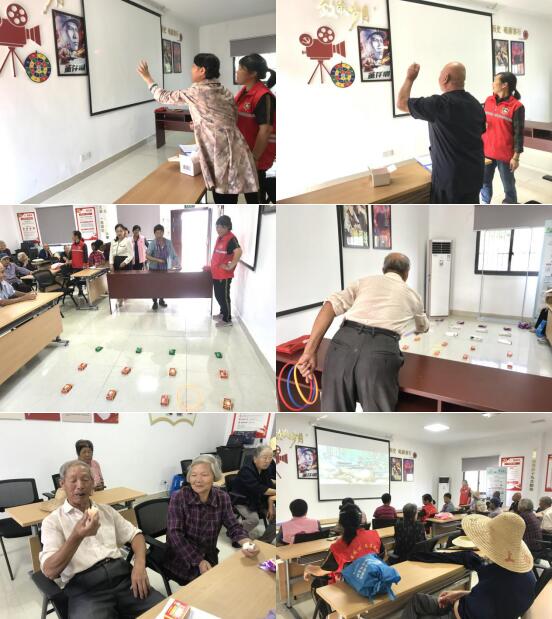 月餅DIY后,便迎來(lái)了趣味游戲扔飛鏢、套圈等環(huán)節(jié)。大家通過(guò)扔飛鏢的命中率多少來(lái)收獲得圈的數(shù)量。最后志愿者邀請(qǐng)居民們一同品嘗月餅,并觀賞經(jīng)典電影《建國(guó)大業(yè)》,在志愿者的引導(dǎo)下,大家有序的落座,觀影過(guò)程中,居民們聚精會(huì)神,被電影里的故事深深吸引,看到高潮之處更是不由自主地歡呼起來(lái)。