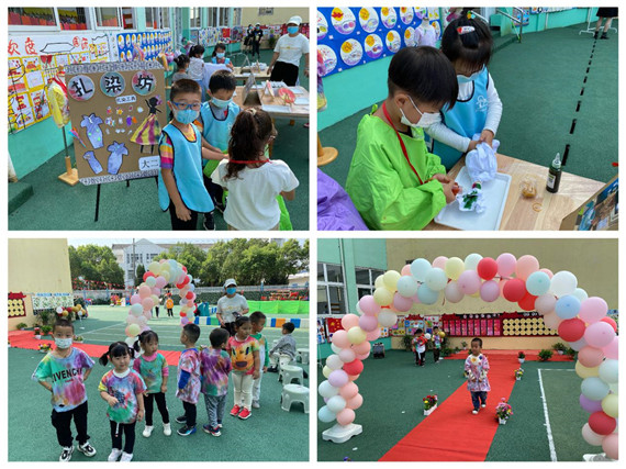 結(jié)合本園十三五市級課題《基于繪本的幼兒園主題活動的開發(fā)與實施》,大班組以繪本《我的祖國》開展了愛國的一系列主題活動,培養(yǎng)孩子愛祖國、愛家鄉(xiāng)、愛人民的情感,內(nèi)容豐富多彩,形式靈活多樣,效果十分顯著,深受幼兒及家長的喜愛。例如大一班的“搭建天安門”,大二班的“扎染”,大三班的“舞龍”,大四班的“皮影戲”,不管是活動材料的準(zhǔn)備還是活動環(huán)節(jié)的設(shè)計,都是孩子們自己探討得出的結(jié)果,雖然過程不是很容易,需要不斷摸索才能完善,但是孩子們十分用心,很享受探索的過程,孩子們積累經(jīng)驗,不斷進步。