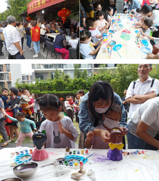 伴著徐徐的微風(fēng),轄區(qū)的親子家庭一同來到轄區(qū)的廣場上,等候新時代文明實踐志愿者給小朋友們紛發(fā)做泥塑彩繪的制作套裝,每套里面都有一個泥塑,一支畫筆、一個涂色板、一份顏料盒,每個套裝里的白胚娃娃也都是不一樣的。材料一切準(zhǔn)備齊全后,小朋友們紛紛以自己喜歡的顏色作為主色彩,按照自己的喜好搭配好色彩進行上色。在時間靜靜的流淌下,小朋友們沉浸在涂鴉創(chuàng)作中,經(jīng)過孩子們的精心繪制,一個個色彩斑斕的白胚娃娃變成了一個個卡通形象的玩偶呈現(xiàn)在大家眼前,孩子們開心地和自己的作品合影留念。