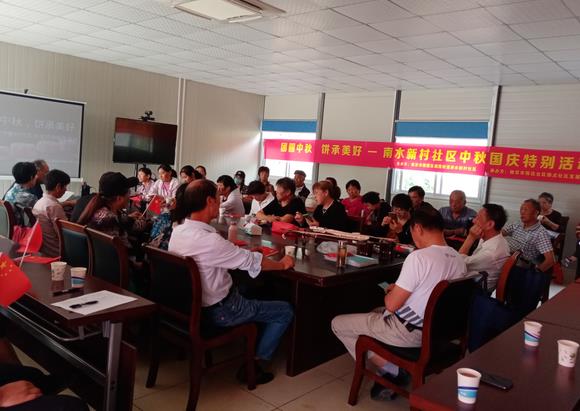 活動(dòng)開始,南水新村社區(qū)的丁宗明書記首先為居民送上了喜迎國(guó)慶,歡度中秋的祝福,然后發(fā)言慶祝中華人民共和國(guó)成立71周年,憶崢嶸歲月、話美好未來(lái),感受中華人民共和國(guó)成立和發(fā)展的艱辛歷程,感受中國(guó)共產(chǎn)黨的初心和使命,珍惜來(lái)之不易的美好生活,激發(fā)了居民愛(ài)國(guó)愛(ài)家的熱情。