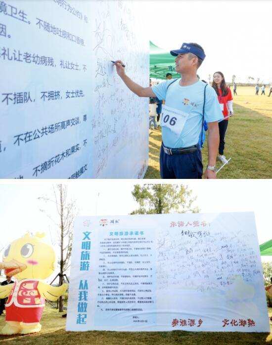 為進(jìn)一步培育和踐行社會(huì)主義核心價(jià)值觀,倡導(dǎo)文明新風(fēng)尚,宣傳文明旅游的觀念,在活動(dòng)開始之前倡導(dǎo)了“文明旅游從我做起”主題宣傳活動(dòng),大家在文明墻上莊重地簽下自己的名字,簽名版上密密麻麻的名字見(jiàn)證了大家對(duì)爭(zhēng)做“最美湖熟人”的承諾,以自身行動(dòng)為文明旅游、綠色出行代言。