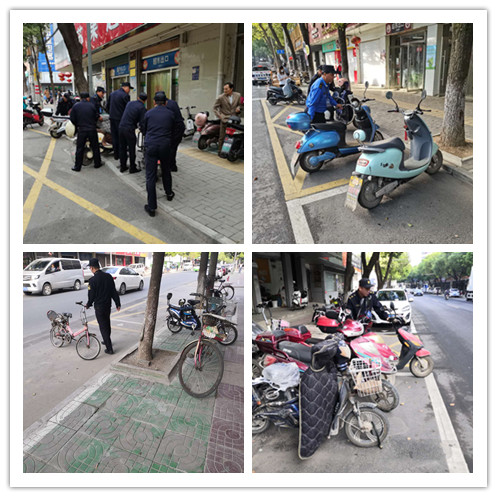 三、打好“長效牌”,保持常抓不懈的韌勁。對占道經(jīng)營、亂堆亂放等“門前三包”落實不到位的,在日常工作中進一步加強城市管理相關(guān)法律法規(guī)的教育引導(dǎo),提高沿街商戶自我約束、自我管理的意識;對亂停亂放非機動車的,安排專人蹲守,加強動態(tài)管控,確保非機動車有序停放至劃線區(qū)域,做到“方向一致,整齊劃一”,落實長效管理機制。