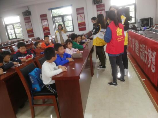 南京曉莊學院4名大學生志愿者來到荊劉村關愛青少年兒童,為本次活動拉開了序幕。課業(yè)輔導分為兩節(jié)課,第一節(jié)課為興趣課程,主題講述的是美猴王的故事。志愿者以知識競賽的形式,把參加活動的孩子們分成四組,觀看美猴王視頻,然后出題,考驗大家對西游記的掌握情況。為了取得比賽好成績,小組內(nèi)孩子們開動腦筋,啟迪思維,興致勃勃,現(xiàn)場氛圍濃厚。