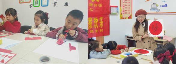 最后共享歡樂,開始中國風(fēng)剪紙,在傳統(tǒng)藝術(shù)獨(dú)特魅力的感染下,孩子們聽得仔細(xì),有的折紙、有的剪紙,大家在愉悅的氣氛中相互學(xué)習(xí)相互交流,認(rèn)真地剪刻著自己的圖案,一幅幅惟妙惟肖的剪紙作品完成了。