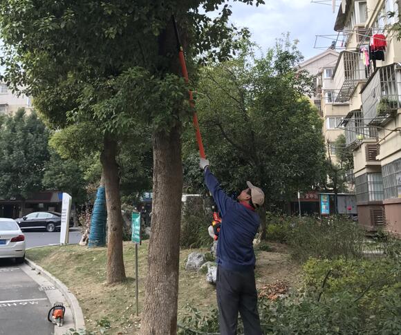 為進一步美化社區(qū)環(huán)境,營造一個舒適、整潔、安全的人居環(huán)境,南京市棲霞區(qū)馬群街道百水芊城社區(qū)對小區(qū)內(nèi)綠化樹進行修枝剪葉。