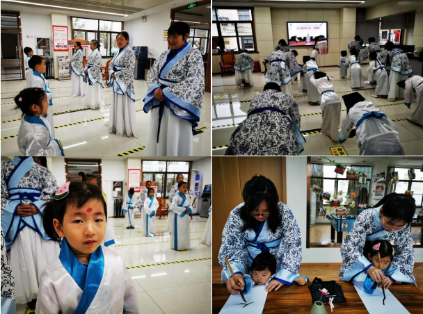 衣冠整潔不僅是對自己和他人的一種尊重,而且先正衣冠、后明事理,這也是讓孩子們知書明理的第一步。謝師恩。“師者,傳道授業(yè)解惑也”,孩子們學著老師示范的作揖動作,叩拜孔子像,行“三拜三興”禮。朱砂啟智。由父母們用鮮艷的紅色朱砂在孩子們的額頭正中點上紅痣,寓意開啟智慧,從此眼明心亮,奮發(fā)向上。孩子們隨后向父母行揖禮,感恩父母。開筆描紅。一切偉大的理想都始于做人,家長們帶著孩子用毛筆在紙上寫下“人”字,一撇一捺是父母對孩子成人成才的美好憧憬。經(jīng)典誦讀。在主持人的帶領下,全體大聲吟誦《弟子規(guī)》,感恩立志,握筆始書,以行正道,以報國恩。在朗朗的中華經(jīng)典誦讀聲中,啟蒙禮儀式,禮成!