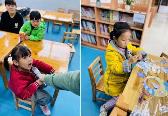 聽故事、做手工。本次繪本故事分享會(huì),志愿者首先帶領(lǐng)轄區(qū)內(nèi)兒童進(jìn)行“睡覺覺”手指謠暖身活動(dòng),鍛煉孩子們精細(xì)動(dòng)作的發(fā)展的同時(shí)也增進(jìn)了親子間的互動(dòng)。隨后,在繪本講讀環(huán)節(jié)中,志愿者帶來了繪本故事《晚安,貓頭鷹》,孩子們聚精會(huì)神,共同感受故事情節(jié),進(jìn)入到多姿多彩的閱讀世界中。“捕夢網(wǎng)源自18世紀(jì),印第安人會(huì)用它來捕獲美麗的夢幻……”,志愿者娓娓道來捕夢網(wǎng)的美麗傳說,并向大家詳細(xì)講解了制作捕夢網(wǎng)的每一個(gè)步驟。在家長和志愿者的指導(dǎo)下,孩子們認(rèn)真打造自己心中所想的捕夢網(wǎng)。從開始階段的繞線,到編織網(wǎng)、手工裝飾,每一個(gè)步驟都反復(fù)推敲。經(jīng)過齊心協(xié)力,最終獨(dú)特而美麗的夢幻捕夢網(wǎng)逐一成型。