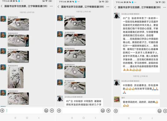 書法、國畫是中國傳統(tǒng)文化藝術(shù)具有標(biāo)志性的民族符號(hào)。得知江寧區(qū)老年大學(xué)等各級(jí)單位都沒開學(xué),張老師和國畫書法班兩位班長轉(zhuǎn)換思路,轉(zhuǎn)而開展“書法國畫班”線上教學(xué)。每周一,備課上課,由書法班班長拍攝視頻,周二上午8點(diǎn)發(fā)群里,供殷巷社區(qū)居民學(xué)習(xí)。每周四備課上課,由國畫班班長拍攝視頻,每周五上午8點(diǎn)發(fā)群里,供殷巷社區(qū)居民學(xué)習(xí)。教學(xué)開始后,書法國畫班的學(xué)員在群里積極響應(yīng),認(rèn)真學(xué)習(xí),按時(shí)交作業(yè)。學(xué)習(xí)氣氛良好,學(xué)習(xí)積極性一點(diǎn)也不亞于線下學(xué)習(xí)班。