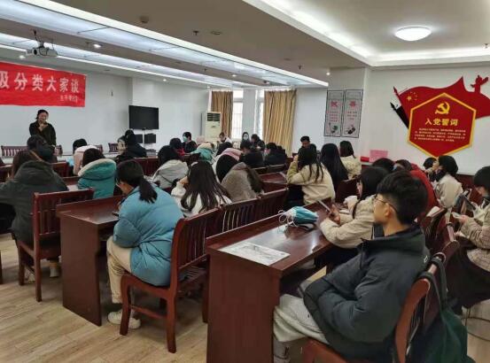 “生活垃圾被分成了四類,它們分別是可回收物、有害垃圾、廚余垃圾和其它垃圾。紙板、塑料是可回收垃圾,放在藍色垃圾桶;廢舊電池、過期藥品放在紅色垃圾桶; 廚余垃圾放在綠色垃圾桶; 磚瓦、陶瓷放在灰色垃圾桶……”區(qū)公眾委員林新宇向參加活動的居民詳細講解了垃圾分類的方法,同時播放了垃圾分類的相關視頻,結合圖片和具體的事例講解了生活中產生的垃圾分類的種類,實行生活垃圾分類的重要意義等內容,參會人員認真學習了垃圾分類的相關知識,并結合實際生活動遇到的分類難題進行了互相交流,現場南京郵電大學的志愿者們還在現場開展了垃圾分類實施中的難點的問卷調查,通過問題導向,切實解決分類工作開展中的困難,消除盲點和空白點,提高垃圾分類工作的準確性,加快分類工作走實、走心。