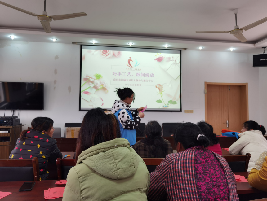 為豐富轄區(qū)婦女的業(yè)余生活,挖掘婦女自身潛能,倡導(dǎo)文明、健康、向上的生活方式,12月10日上午,江寧區(qū)淳化街道柏墅村聯(lián)合晨曦未保在村委會(huì)開(kāi)展"巧手工藝,紙間綻放"婦女技能培訓(xùn)活動(dòng),18名婦女踴躍參與。