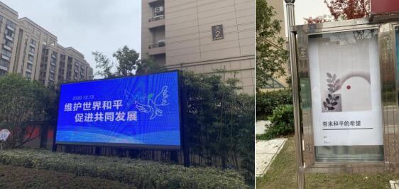 公祭日一早,石埠橋村的工作人員們就忙活起來了。他們分散在轄區(qū)的各個角落,一邊將轄區(qū)內(nèi)的宣傳欄內(nèi)張貼的宣傳海報換成早已準備妥當?shù)墓廊招麄骱?,一邊將轄區(qū)宣傳陣地的“主力軍”電子屏上放置倡導和平的公祭日宣傳物料,時刻提醒過往的村民群眾牢記歷史,不忘過去,珍愛和平。