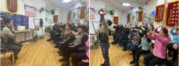 活動(dòng)現(xiàn)場(chǎng),社區(qū)邀請(qǐng)到霎哈嘉冥想瑜伽的木筆老師前來(lái)給老人們做拍打和自覺(jué)。霎哈嘉瑜伽為錫呂·瑪塔吉女士所創(chuàng),她幾乎以全部時(shí)間四處傳揚(yáng)霎哈嘉瑜伽這種靜坐法,從不收費(fèi),讓人類可以集體大規(guī)模地得到自覺(jué),發(fā)展身心健康。現(xiàn)在霎哈嘉瑜伽現(xiàn)巳在全球五大洲流傳,共有近108國(guó)巳設(shè)有靜坐班。老人們?cè)诶蠋煹膸ьI(lǐng)下,體驗(yàn)了“九步自覺(jué)法”,并且靜心冥想了二十分鐘,都感覺(jué)到身心舒暢。老師還跟老人們分享了鹽水泡腳法,討論了“瑜伽”的含義,大家都覺(jué)得受益良多。