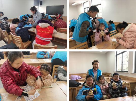 活動(dòng)開(kāi)始,社區(qū)志愿者向每一位小朋友們分發(fā)了制作材料。隨后,老師詳細(xì)地講解了制作音樂(lè)盒的每一個(gè)步驟。講解完后,孩子們紛紛動(dòng)起手來(lái),充分發(fā)揮自己獨(dú)特的創(chuàng)造能力和想象力,特別認(rèn)真地用手中的材料去制作屬于他們心中的音樂(lè)盒。“哎呀,我的小煙囪做好了”。“瞧:我的音樂(lè)盒發(fā)出聲音了。”活動(dòng)室里滿是歡聲笑語(yǔ)。一些年齡較小的孩子,也在父母和志愿者老師的協(xié)助下,順利完成了自己的作品。每一組家庭都合作得十分融洽,制作完成后,大家紛紛帶著自己的作品進(jìn)行了展示和分享?;顒?dòng)最后,老師叮囑孩子們“愛(ài)要分享給大家”,讓孩子們回家后將自己親手制作的音樂(lè)盒送給家人,希望他們?cè)诙羴?lái)臨之際,寒冷的冬天,能聽(tīng)一曲美妙的音樂(lè),讓他們?cè)诠?jié)日中深深感受到孩子們給予的溫暖。