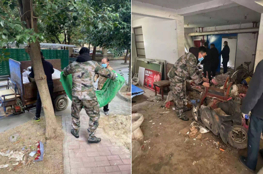 清垃圾 消隱患 文康苑社區(qū)民兵參與小區(qū)環(huán)境整治