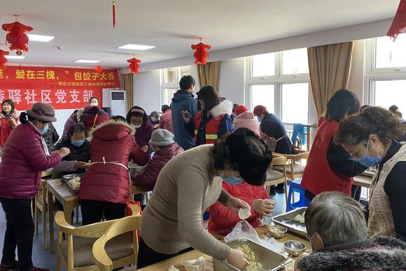 12月21日是庚子年的冬至節(jié)氣,它既是二十四節(jié)氣中的一個(gè)重要節(jié)氣,也是中國民間的傳統(tǒng)節(jié)日。雖然已進(jìn)入極寒時(shí)節(jié),但是南京的天氣一片晴好,陽光明媚,南京市棲霞區(qū)馬群街道金陵驛社區(qū)的活動室里更是其樂融融,志愿者和老年居民一起包餃子、過冬至。