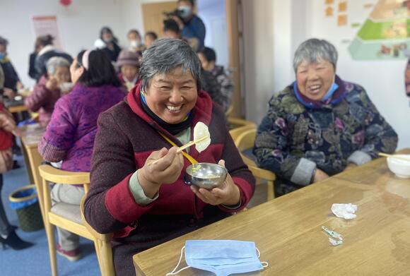 隨后,志愿者們將包好的餃子煮熟,分給參賽選手、分給工作人員、分給高齡老人,一個(gè)個(gè)餃子包含著祝福和關(guān)懷,大家一邊吃著親手包的餃子,一邊聊著冬至的傳統(tǒng)習(xí)俗,一邊還載歌載舞為節(jié)日助興。
